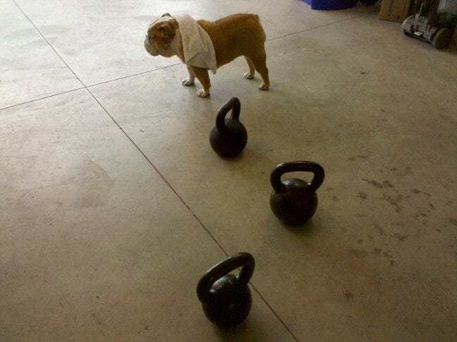 When I’m doing a kettlebell phase, it’s 2 days a week of explosive training with the ‘bell, then use barbells or dumbbells for the 3rd workout - to focus on max strength.